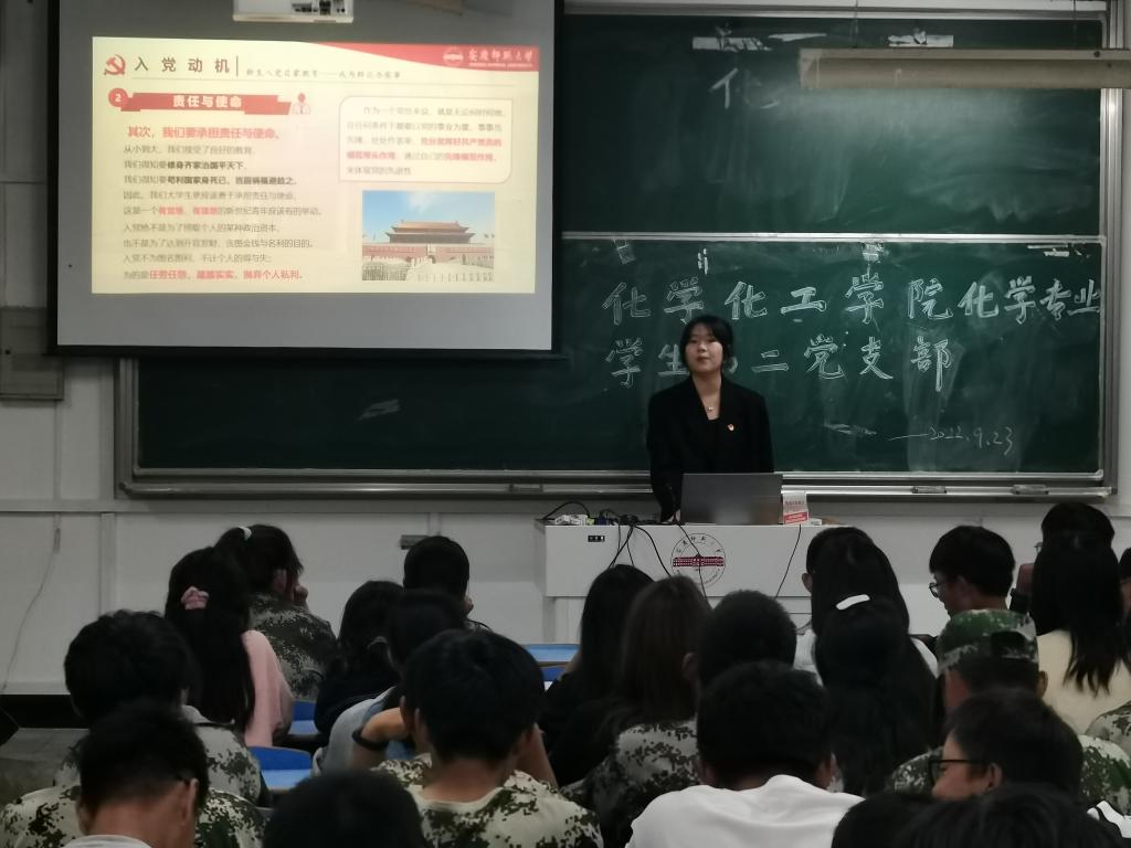 本次活动内容主要由“我为什么要入党、共产党员是一群什么样的人、怎样加入党组织”三部分组成。员工党员结合自身学习生活经历,讲述了公司师生在参加“我为群众办实事”系列党日活动等方面的积极贡献,引导同学们端正入党动机,激励同学们以实际行动早日加入中国共产党。员工党员以模范党员的典型事迹详细介绍了“共产党员是一群什么样的人”,向新生们展示了优秀共产党员坚定的理想信念和崇高的共产主义信仰。员工党员还从自身入党经历入手介绍了党员发展流程,指导新生撰写入党申请书,为正确迈出成为一名共产党员的第一步做好准备。