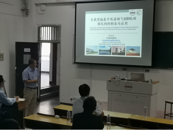 黄张根教授的报告题为“烟气多种污染物超低排放的炭基催化剂及技术”。黄教授在报告中讲解烟气污染物控制技术概况,烟气多种污染物脱除的炭基催化剂和炭基催化剂的移动床技术。黄教授的报告深入浅出,幽默风趣,黄教授还就研究生提出的相关问题给予了详细的解答。
