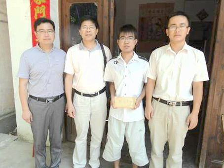 为深入了解公司家庭经济困难员工家庭具体情况,广泛宣传党和国家对家庭经济困难员工的资助政策。8月1月,公司党总支书记夏宏宇、党政办公室主任何承东、团总支负责人汪磊、员工资助专管老师程文一行四人来到望江县华阳镇白沙村对09级工艺专业员工祖运进行了回访。