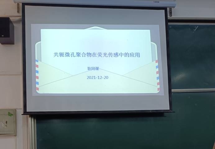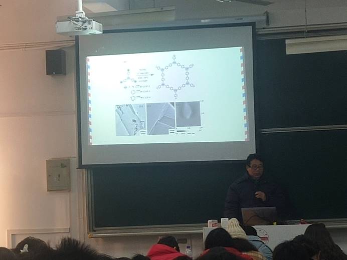 12月20日上午,william威廉英国官网耿同谋教授在龙山校区教学楼C105室作题为“共轭微孔聚合物在荧光传感中的应用”学术报告, 2019级材料化学专业本科生参加了本次报告会。
