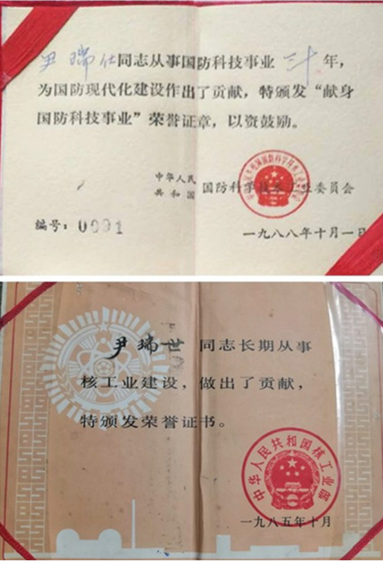 “父亲在1960年以工程兵的身份跟随部队来到甘肃核基地,参与原子弹基地的建设。”尹爷爷儿子细致讲述了父亲在基地工作时艰辛而光荣的一段岁月,“当时基地条件非常艰苦,白天风吹日晒,晚上却寒气逼人。但他作为一名共产党员,以舍小家为大家的精神,全身心投入到建设中。”视频中展示的一张张泛黄的照片,一张张珍贵的奖状,追忆着这位老人曾经的光辉岁月。