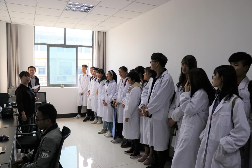 下午两点半2019级化学专业所有员工身穿白色实验服在龙山校区化学楼前集合,支部党员、公司分管实验室副经理王钧伟介绍了化学实验室建设的总体情况,希望同学们通过此次参观实验室交流活动加深对专业方向的认知,激发学习及科研兴趣。随后2019级化学专业4个班级分别在支部党员的引导下有序的参观了本科基础实验室、大型仪器室以及教师科研实验室。参观过程中员工们兴致勃勃,陆续接触到了各种新奇的实验器材,见识了很多未曾听闻的高端分析检测设备,也聆听了不同研究方向老师们的研究介绍,近距离了解了科学研究的过程以及研究生的日常研究工作。