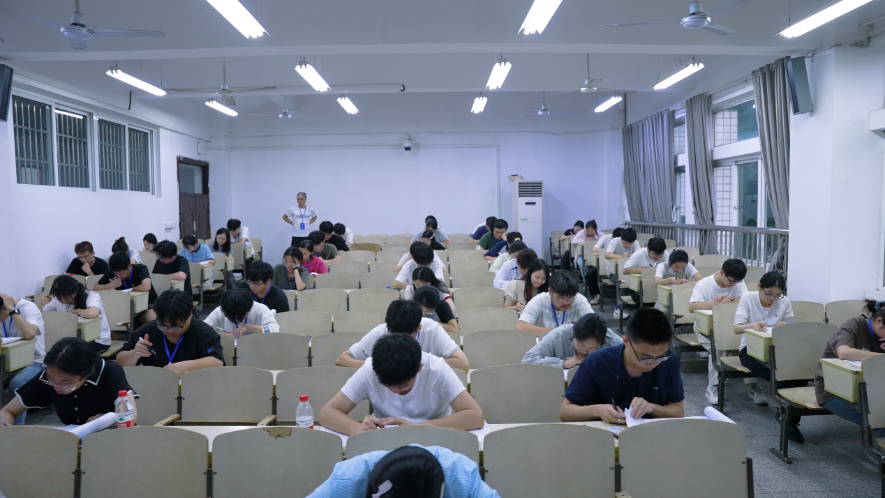 7月18日晚,理论考试在龙山校区教学楼顺利开展。选手们时而蹙眉沉思,时而奋笔疾书,面对无机化学的精密计算、分析化学的逻辑推演、有机化学的结构解析,展现出了扎实的化学理论功底。7月19日9时至17时,实验操作比赛在化学楼实验室进行。身着实验服的选手们沉着操作,移液管在手中稳如磐石,滴定时目光紧盯液面变化,烧杯中溶液的每一次颜色转变都牵动神经。