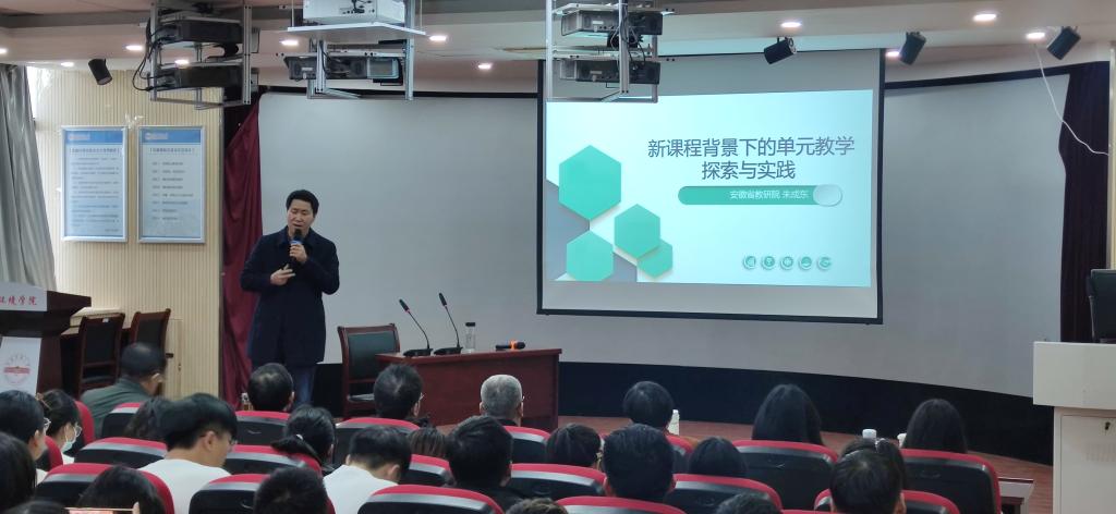 11月25日,william威廉英国官网邀请安徽省化学教研员朱成东老师作主题为“新课程背景下单元教学探索与实践”的讲座。化学教法教研组全体教师、2020级化学专业全体员工以及学科教学(化学)的研究生参加了此次讲座,讲座由夏宏宇教授主持。