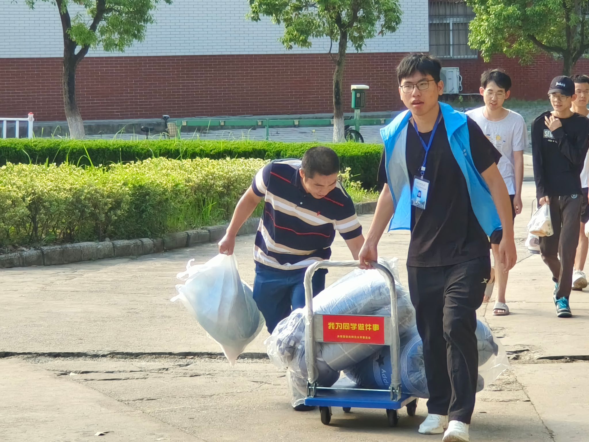 志愿服务的过程中,材料化学专业2022级2班郑攀宇不禁感慨道:“新生的模样让我想到了一年前的自己,当年我所有的行李都是学长学姐迎着烈日帮我送到寝室的,今年轮到我为新同学服务了,希望我们的努力能让新生感受到化院学子的热情,将这份爱继续传递下去!”