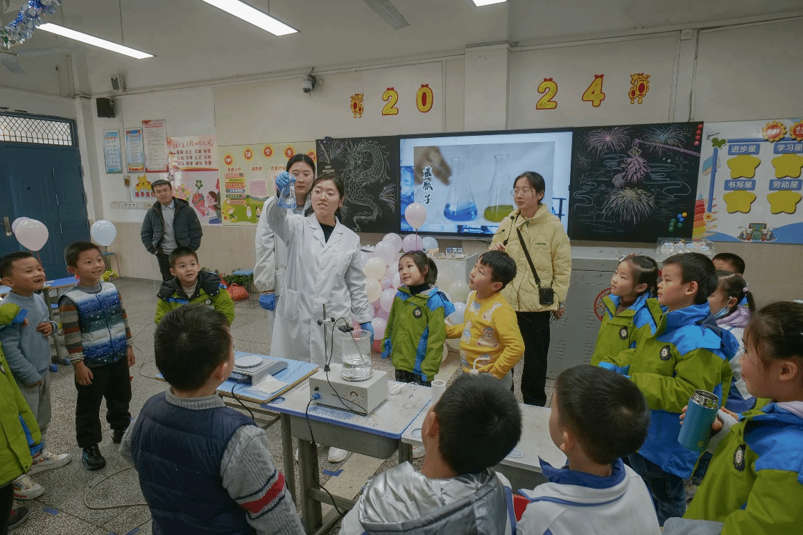 近日,老员工科技化学协会前往安庆市高琦小学开展趣味化学实验,为小员工带去一堂生动的科普互动体验课。
